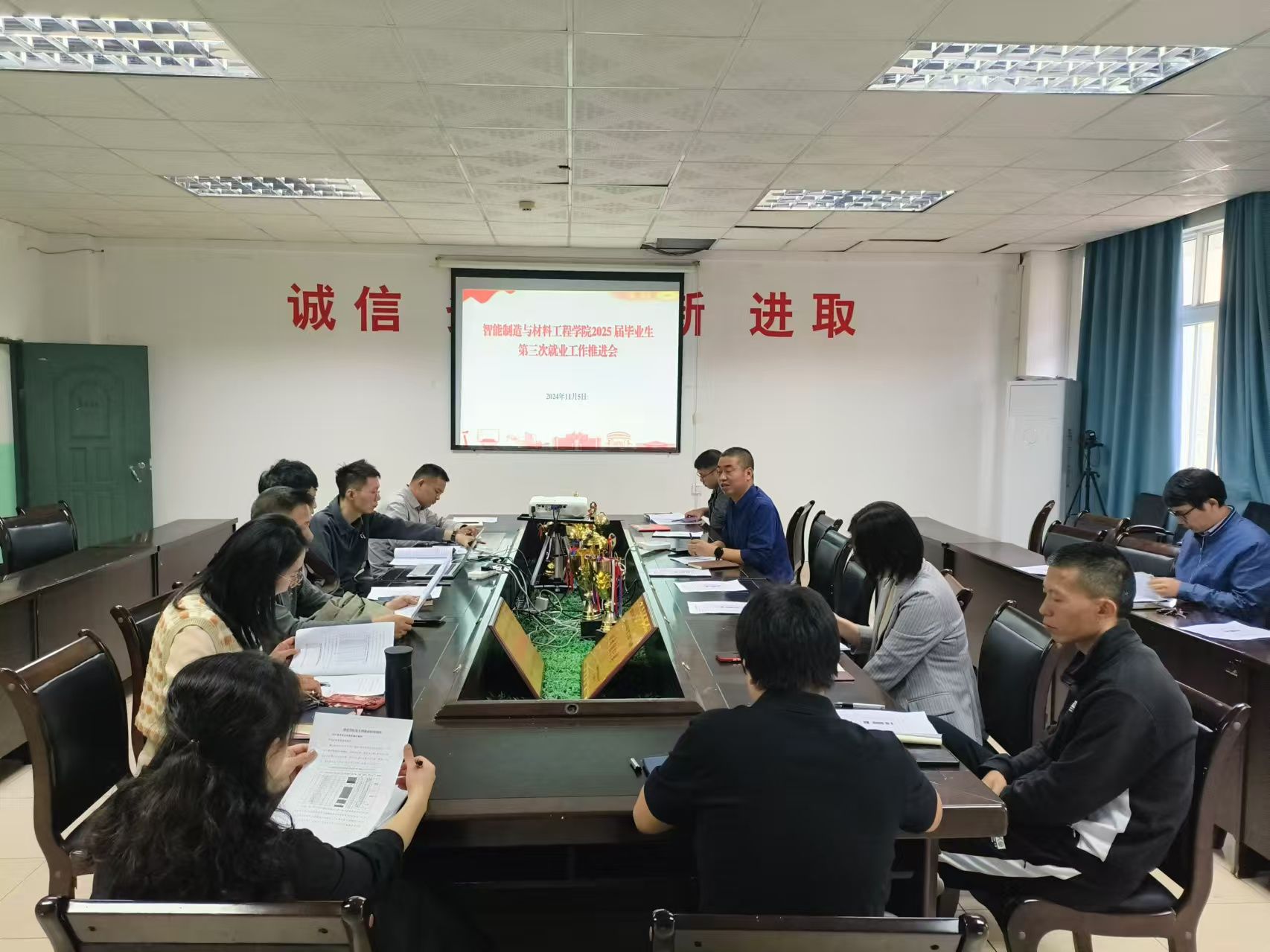 朱根松深入分析了全国高校毕业生毕业去向登记平台相关就业数据,以及学院当前考研报考情况。朱根松通过与以往同期数据对比,阐明了2025届毕业生就业工作严峻态势。各毕业班班主任依次详细汇报了所带班级学生的就业意愿、签约进展、考研及考公的具体情况。参会人员共同探讨和分享了就业工作的宝贵经验和有效举措,旨在进一步提升就业服务质量。