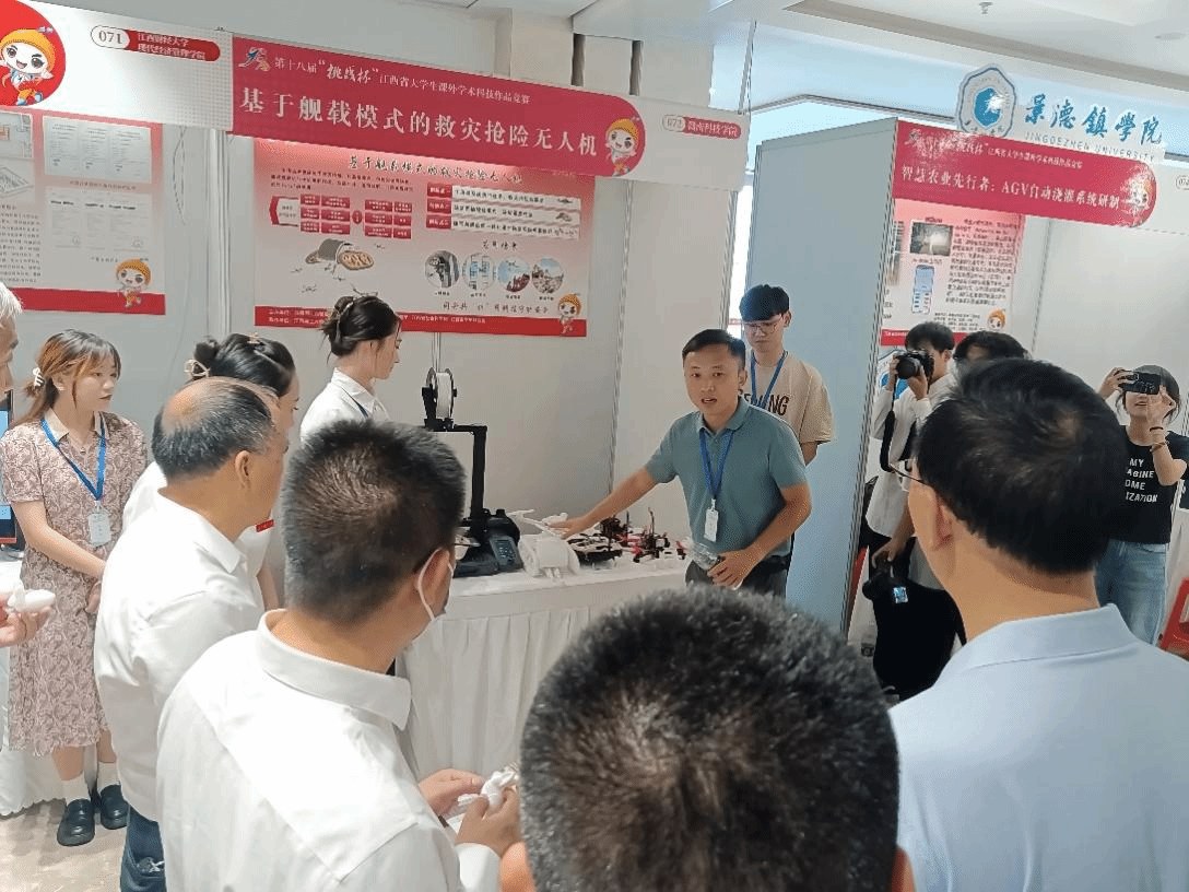 针对本次赛事,学校领导高度重视,校长李国金亲临现场为我院校参赛选手鼓劲加油,勉励同学们认真备赛创造佳绩。同时,共青团江西省委书记邱凌同志及各位专家莅临点点官网作品《同舟共“机”——基于舰载模式的救灾抢险无人机》展台指导,并听取团委李敏书记及学生项目负责人的作品汇报。