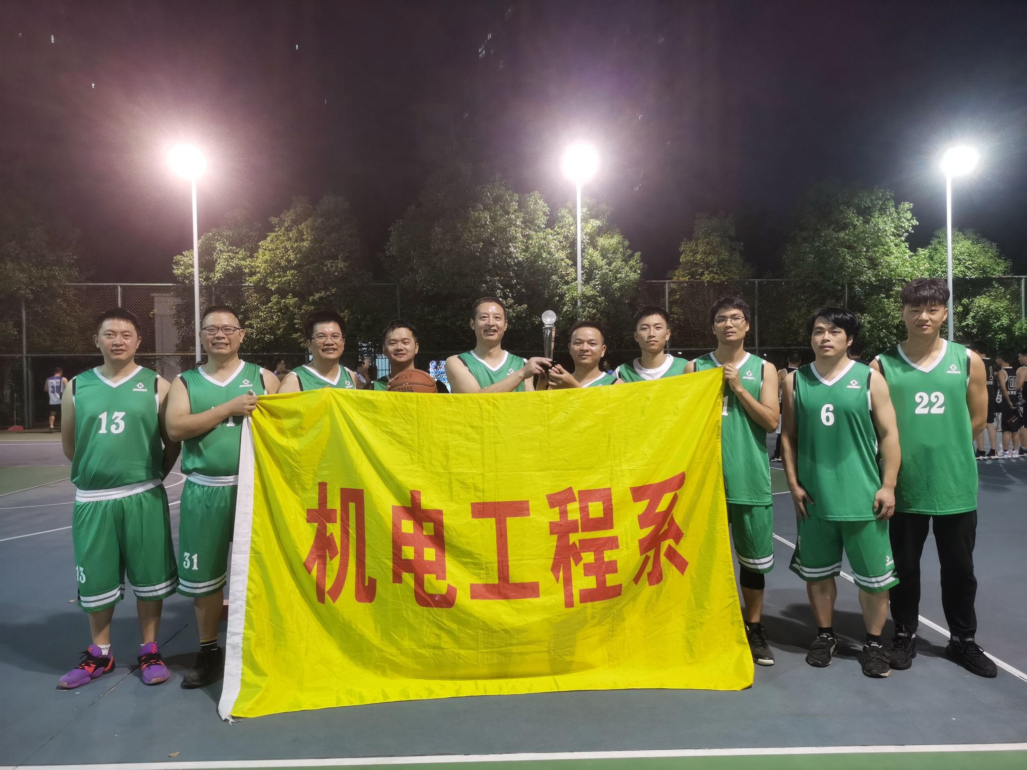 本网讯:10月23日晚,taptap点点体育2023年教工篮球赛最后一轮比赛顺利完成。我系教工篮球代表队凭借出色的现场发挥和顽强拼搏的精神,获得5场全胜的成绩,夺得本届篮球比赛冠军。