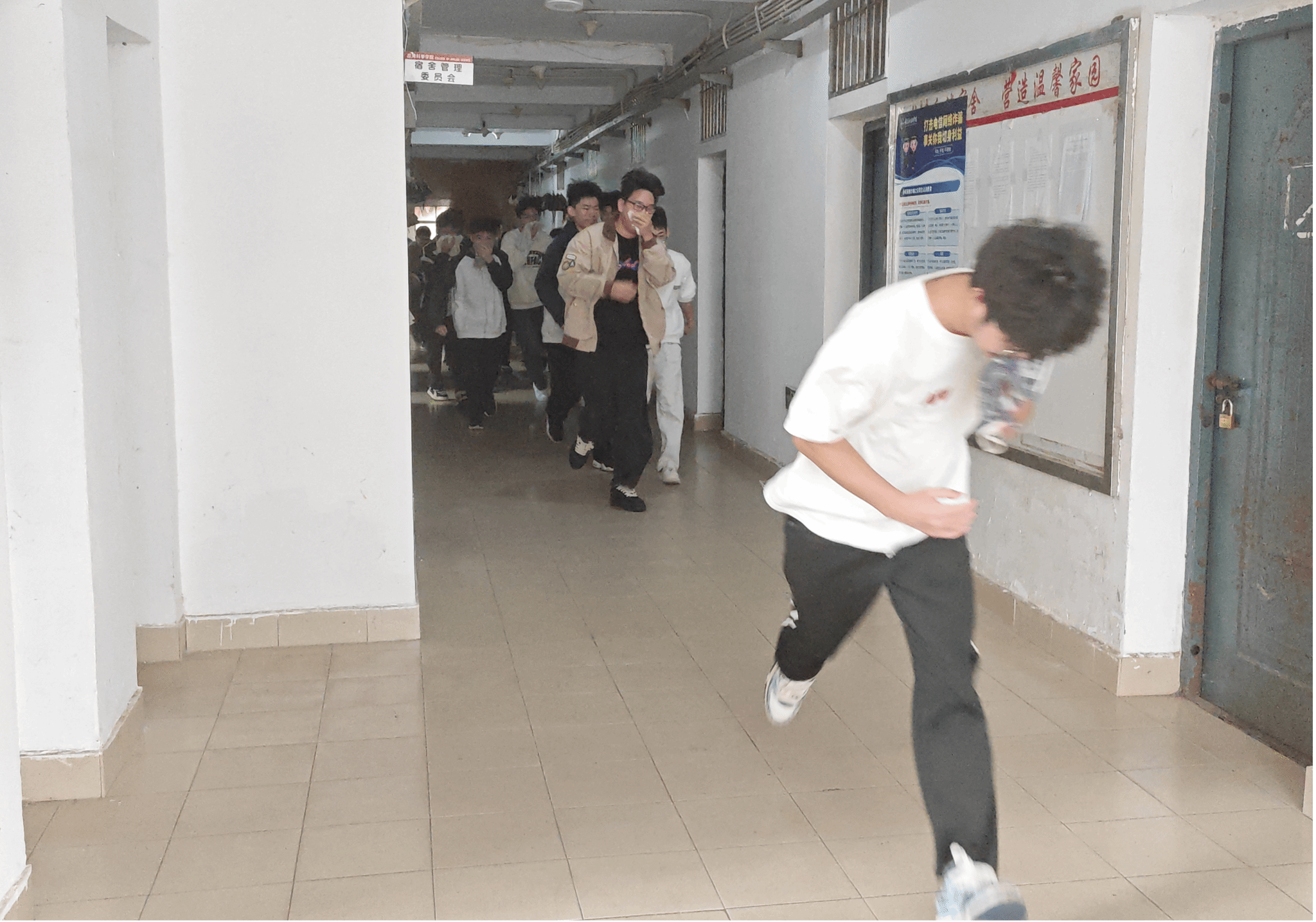 14时30分,应急疏散演练开始,烟雾弹喷出橙色烟雾,师生迅速按照演练方案有序列队,按照既定路线快速、安全的撤离出宿舍到达紧急避险场所,并清点在场人数,确保每一名师生都安全脱险。