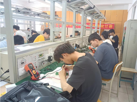 本次比赛采取现场发题,参赛者需要在7.5个小时的封闭考试时间内独立完成电子产品的设计制作。在赛场上,选手们需要认真查阅指导材料,设计电子图,组装电子器件,充分展现了较强的动手能力和创新能力。