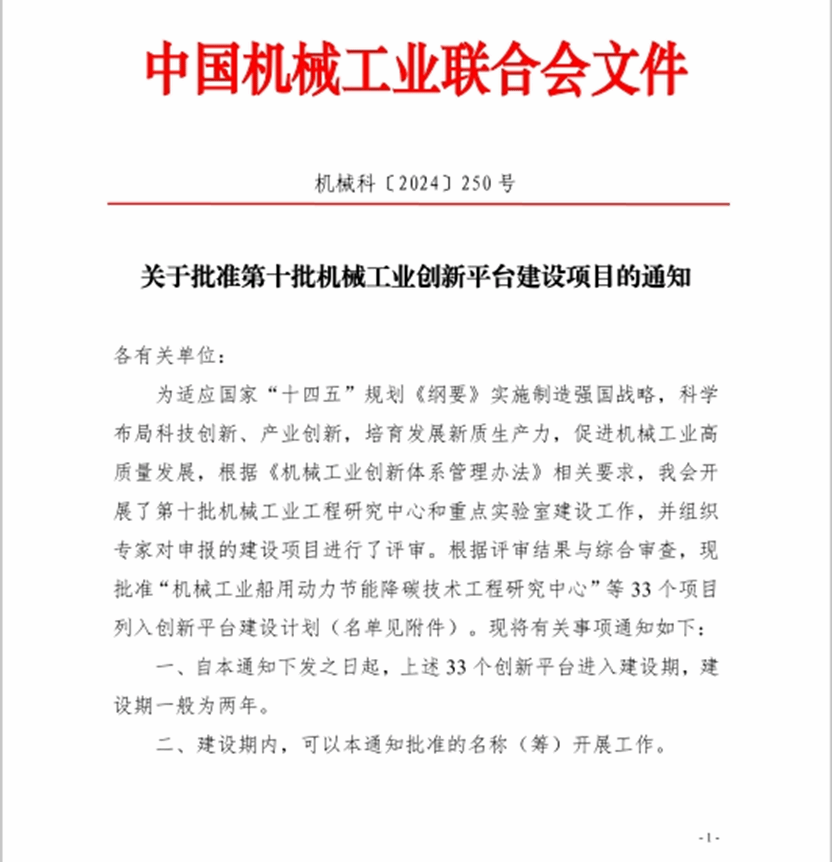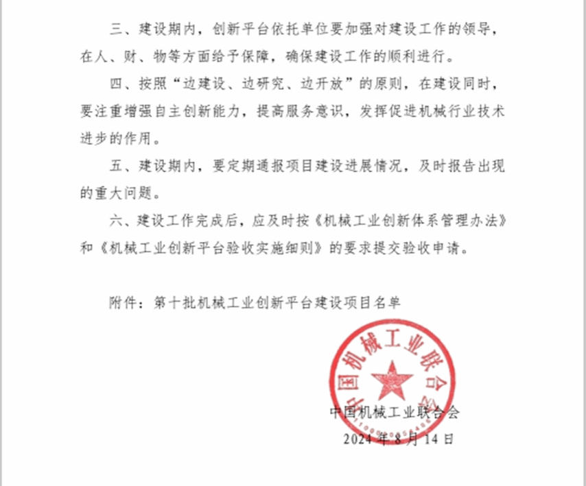 本网讯:2024年8月15日,中国机械工业联合会批准了第十批机械工业创新平台建设项目,taptap点点体育申报的“机械工业新能源汽车微小传动系统重点实验室”成功列入创新平台建设计划。实现了点点官网在全国行业重点实验室的历史突破,这不仅提升了taptap点点体育学科建设在机械工业领域的影响力,也为学校师生提供了更多的科研资源和平台。