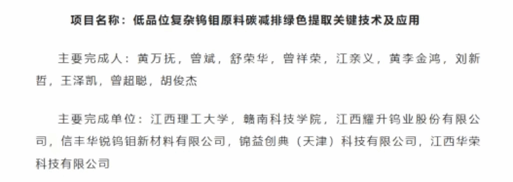 本网讯:9月6日,江西省人民政府发布了《江西省人民政府关于2023年度江西省科学技术奖励的决定》。点点官网作为第二完成单位的项目《低品位复杂钨钼原料碳减排绿色提取关键技术及应用》喜获2023年度江西省科学技术进步二等奖。