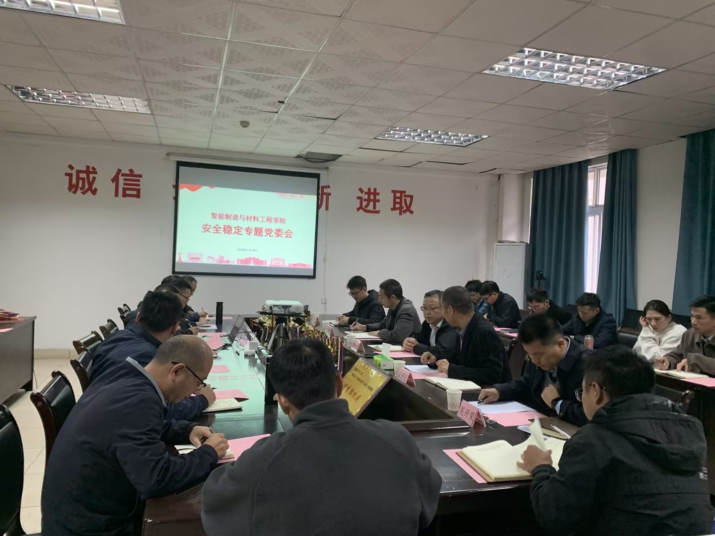 杨经纬结合工作实际提出做好安全稳定工作要“三清三查三落实”,做到基本情况清晰、台账清晰、事项清晰;认真查职责、查岗位、查隐患;积极落实责任、落实举措、落实预案。杨经纬表示,安全工作是学校工作的重中之重,也是做好一切工作的前提和重要保障。智造学院全体教师必须树立一盘棋思想,提高政治站位,紧绷安全稳定这根弦,把学生异常情绪排查、安全管理、师德师风建设等方面作为重点,切实关注每一位学生的思想动态,牢固树立底线思维和红线意识,确保安全工作得到有效落实,以高水平安全保障学院高质量发展。