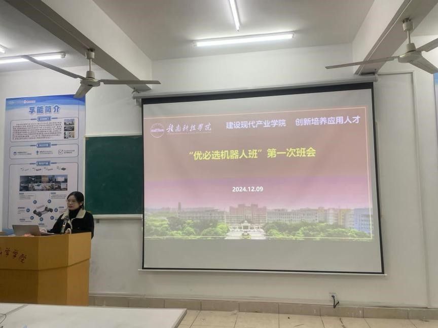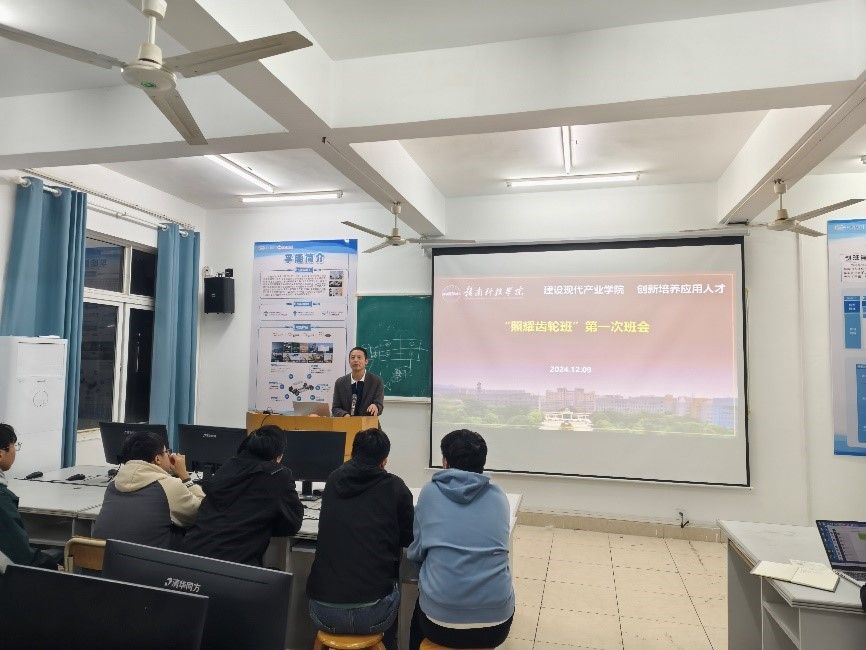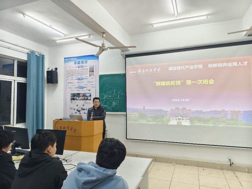本网讯:12月9日,智能制造现代产业学院2026届“照耀齿轮班”“优必选机器人班”和“格力明珠班”分别召开首次班会。智能制造现代产业学院执行院长刘辉、副院长关开荣、教学管理部主任王腊节、产业服务部主任葛德亮,各班级教研室正副主任、班主任以及全体同学参加了会议。班会由葛德亮主持。