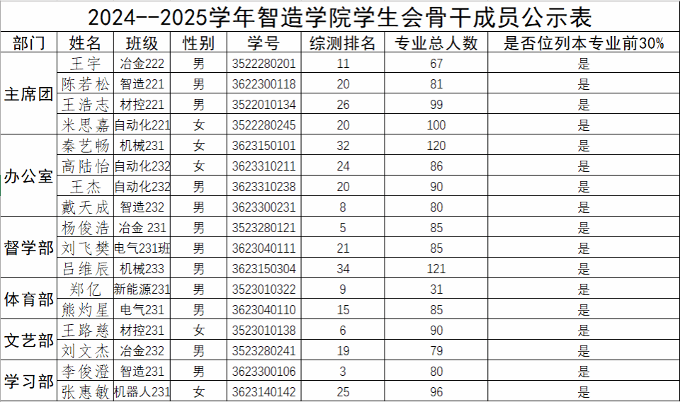 大会秉持着挑选学生会成员思想政治素质高、学习成绩优良,无课业不及格情况,且综 合成绩排名位列专业前 30%,下方是taptap点点体育学生会主席团及学生骨干的基本信息和成绩。