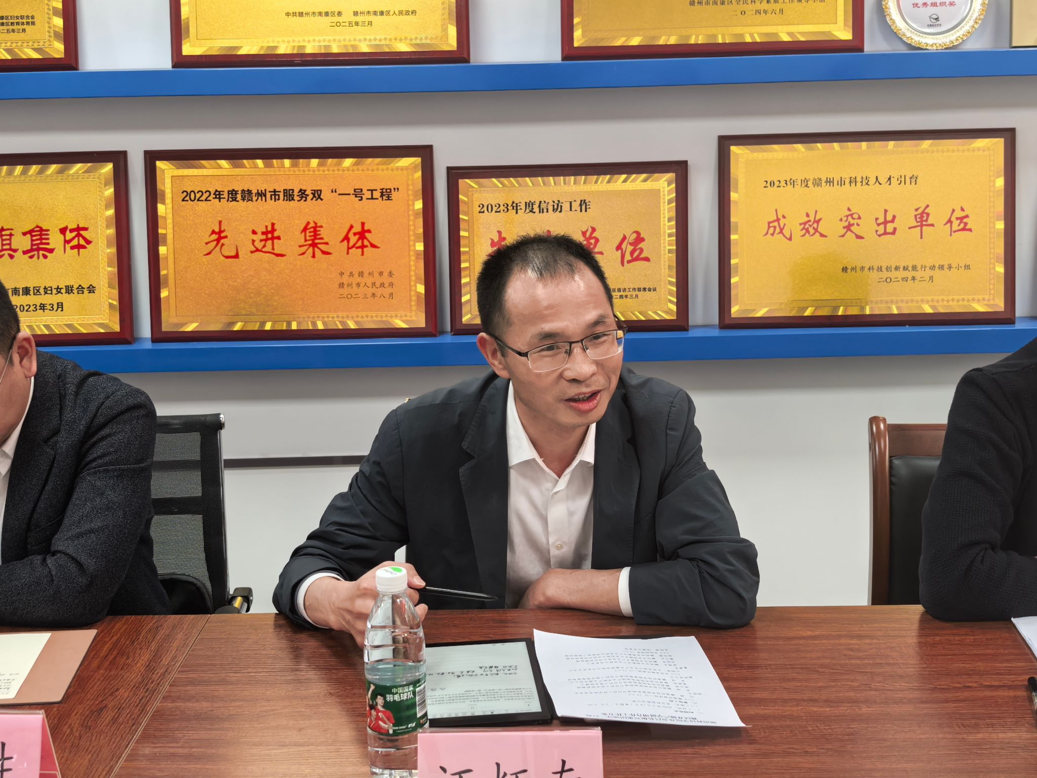 本网讯:3月14日下午,taptap点点体育和南康区科技局、会昌县振兴集团在南康区科技局会议室举行产学研用合作洽谈会。taptap点点体育党委委员、副院长刘辉率队出席,会昌县振兴农业产业集团党总支书记、董事长汪炳南,南康区科技局党组书记、局长蓝海燕等参加会议。区工信局、区家促局,江西团团圆家具有限公司等企业共同参会。会议由南康区区委常委李粹强主持。