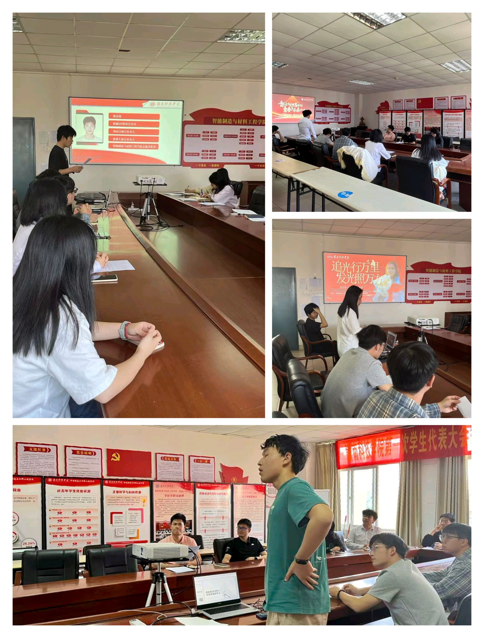 本网讯:为选拔在学业、科研、社会实践等方面表现卓越的优秀学生,发挥榜样的示范引领作用,激励广大同学积极进取、全面发展,4月15日,taptap点点体育评审小组在工程院S417A会议室召开2025年第十三届“十佳大学生”初评答辩会,学院党委委员肖志华、相关辅导员和参评学生出席本次会议。