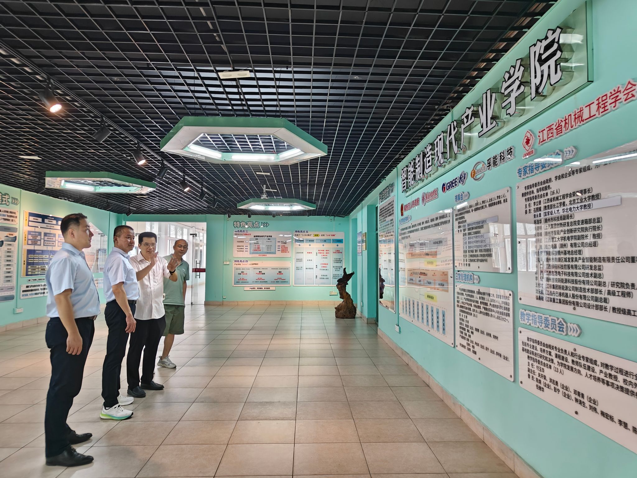 会后,企业代表在关开荣的陪同下参观了产业学院成果展示厅与机器人实验室,介绍了机器人分拣小车等教学设备,并展示了机器人特色班学生参与企业项目开发的实战成果。企业方对学院“教学-实训-研发”一体化的育人模式表示高度认可。
