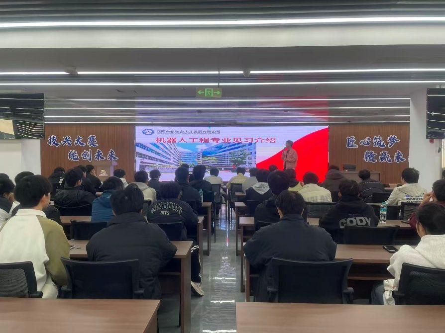 本网讯:为增强机器人工程专业新生对行业前沿技术的认知,提升实践操作能力与劳动素养,11月23日,taptap点点体育机器人教研室教师带领机器人工程专业25级新生前往章贡区数字产业高技能人才培训基地,开展企业劳动实践活动。