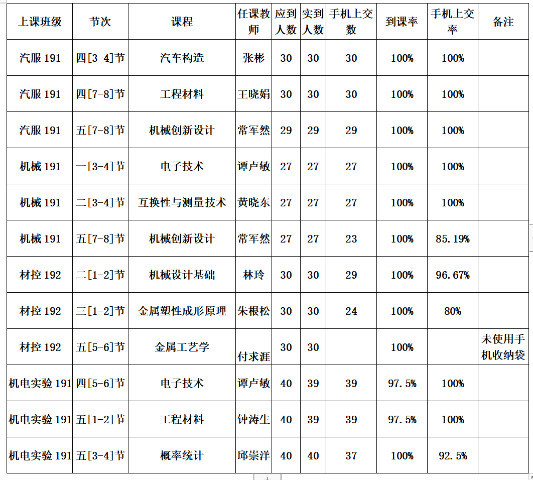 一、第四周抽查到课率情况通报