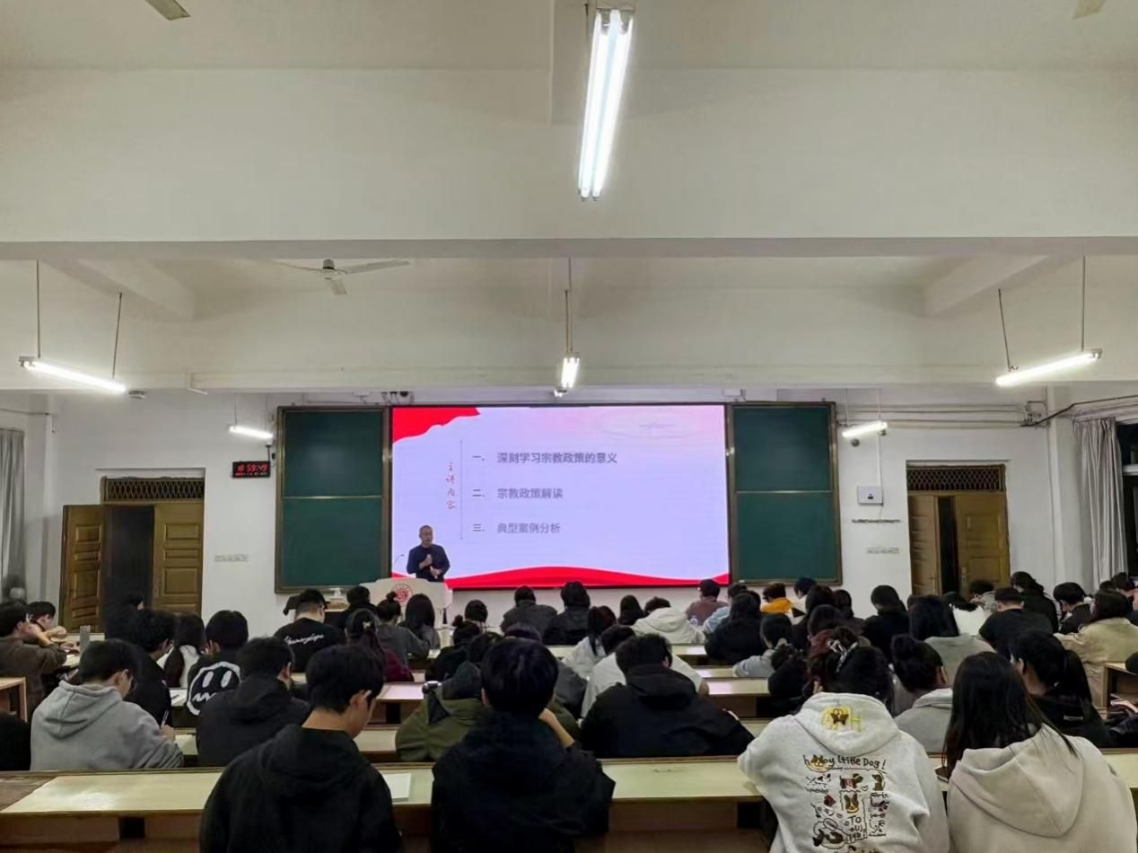 活动以专题宣讲为核心,朱根松老师系统解读《宗教事务条例》等法律法规核心条款,重点阐释“教育与宗教相分离”原则。通过政策解读视频、典型案例剖析等形式,清晰界定校园内宗教相关行为的红线,详解非法宗教活动的隐蔽渗透手段,帮助学生直观掌握“如何辨别非法传教”、“遇到宗教渗透该怎么办”等实用知识。