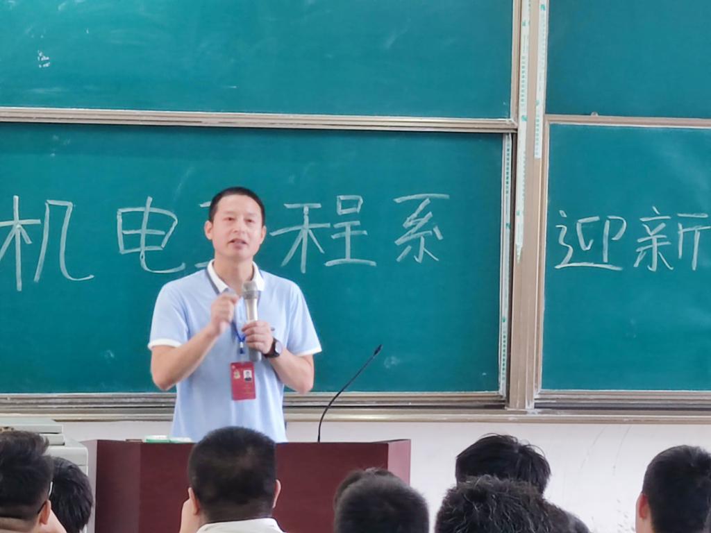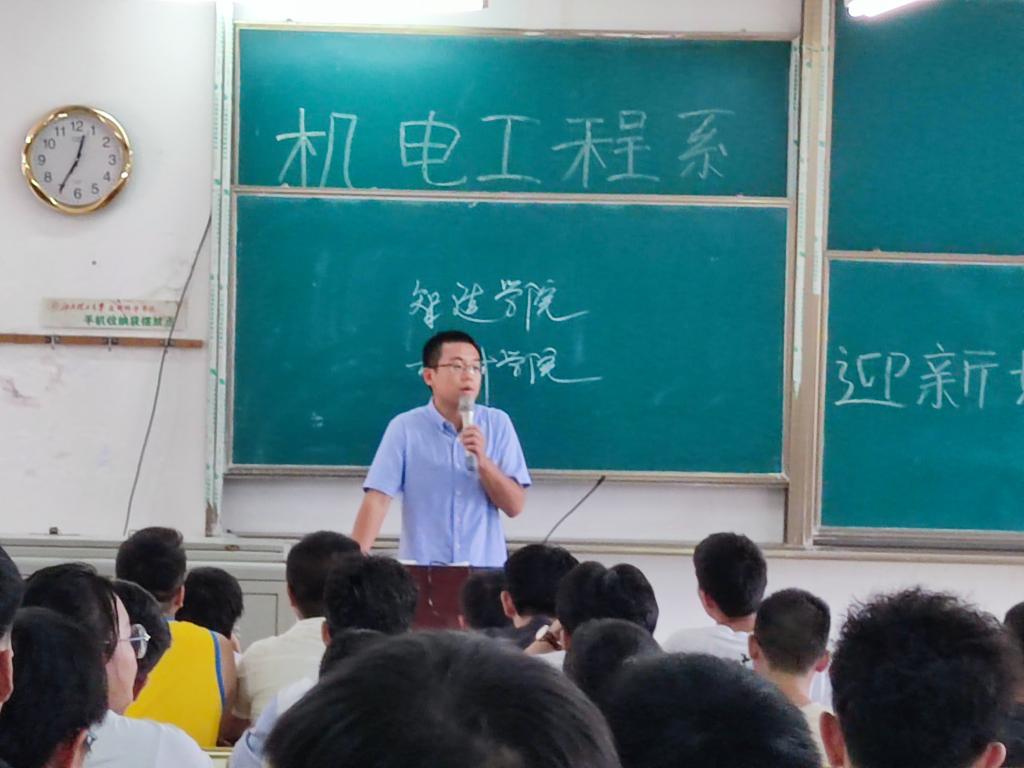 本网讯:9月13日,我系学生会及党支部全体人员进行迎新前的准备工作,在主教Z1D1召开机电工程系迎新培训及动员大会,与会领导有系主任刘辉老师、副主任肖志华老师、团总支书记张敏老师、21级新生辅导员孔靖宇老师。 会议开始由张敏老师主持。
