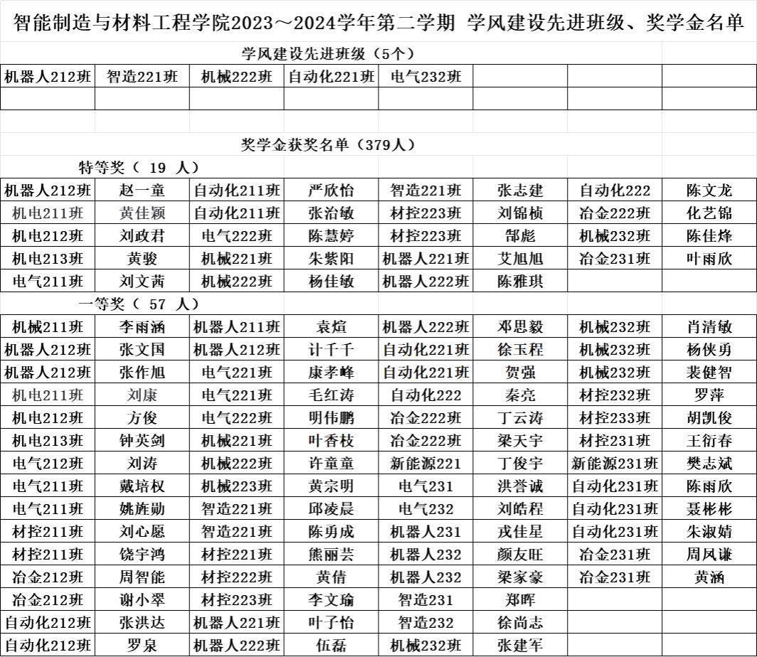 根据学校《关于做好2023-2024学年第二学期学生综合素质测评及学生综合奖学金评定工作的通知》文件要求,按照《taptap点点体育学生综合素质测评评定补充细则》有关规定,经学生本人申请、班级认定评议小组评议、学院认定评审领导小组审定,拟确定机器人212等5个班级获得学风建设先进班级称号,赵一童等379名学生获得综合奖学金。现予以公示,公示期为:2024年10月22日到10月24日,公示三天。如有异议,请在公示期内与学院反映。