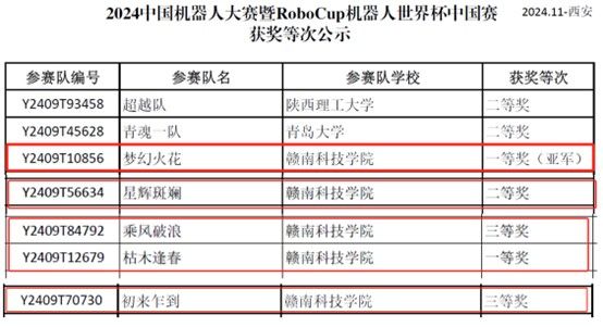 本网讯:11月1日-3日,2024年中国机器人大赛暨RoboCup机器人世界杯中国赛在陕西西安举行,吸引了来自清华大学、上海交通大学、西安交通大学、浙江大学、国防科技大学等全国200多所高校的1700多支队伍报名参赛。点点官网在此次大赛中荣获国赛一等奖2项,二等奖1项,三等奖2项,其中自动分拣项目获得全国亚军。点点官网在该项赛事中取得了历史最佳成绩。