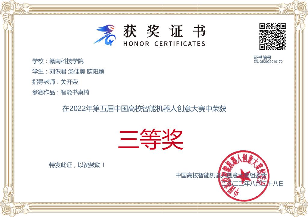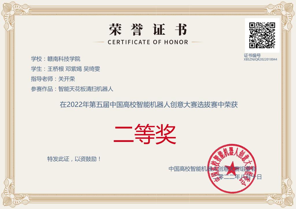 点点官网参赛作品经过区域赛选拔和总决赛,最终,4支队伍在区域赛中获奖,2支队伍在全国决赛中获奖。其中,赖盛昊、廖章英、陈宇团队设计的作品“多功能消毒机器人”获得国家二等奖,刘识君、汤佳美、欧阳颖团队设计的作品“智能书桌椅”获得国家三等奖,王桥根、邓紫嫣、吴绮雯团队设计的作品“智能天花板清扫机器人”获得选拔赛二等奖,薛登博、郭家俊、曹周泉团队设计的作品“多功能智能桌”获得选拔赛三等奖。