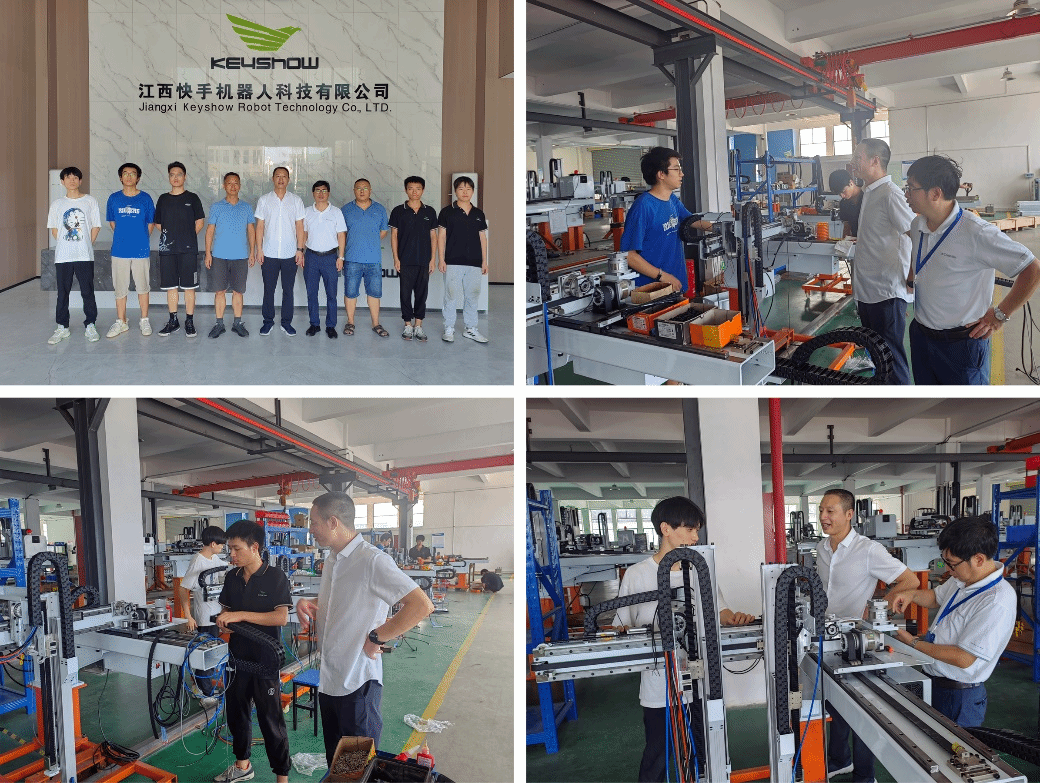 随后,系主任刘辉在江西快手机器人科技有限公司参观其生产车间,在车间看望实习的学生,与学生亲切交谈,了解学生实习的工作和生活情况,并鼓励学生在实习中学习新知识、积累经验,为以后正式步入工作打好基础。最后,系主任刘辉还向公司领导了解实习学生的工作表现,就职业规划和留住人才问题,结合相关案例给企业领导留下人才提供方案建议。
