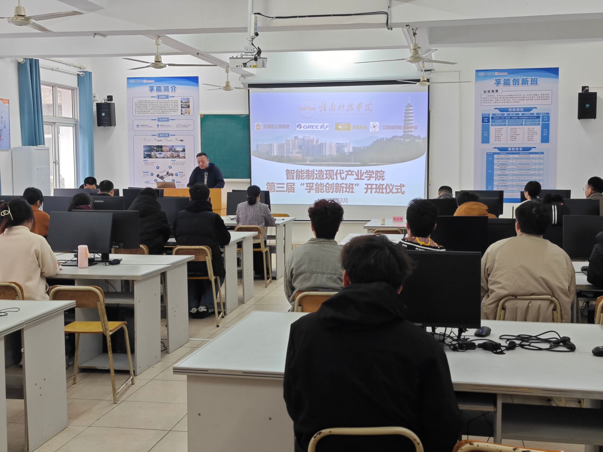 本网讯:3月13日上午,智能制造现代产业学院第三届“孚能创新班”开班仪式在taptap点点体育S408举行。校党委委员、副校长左群出席,孚能科技(赣州)股份有限公司朱战鹏总监、邓青青经理,点点官网教务处副处长李丰、智能制造现代产业学院相关负责人与教师代表、第三届“孚能创新班”全体学员参加活动。开班仪式由taptap点点体育关开荣主持。