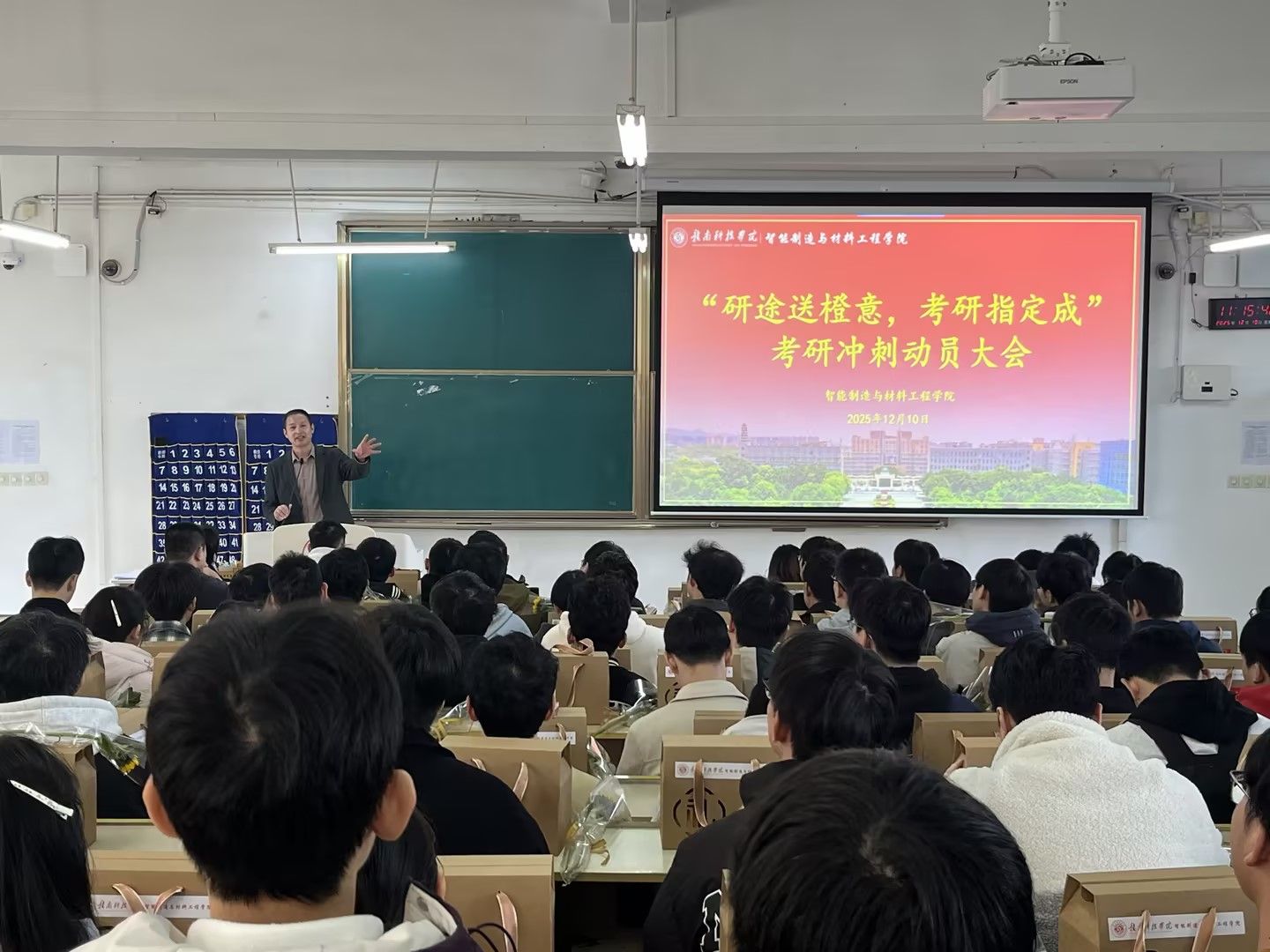 本报讯:考研在即,为有效缓解学子备考压力、增强学子信心,12月10日中午11点,taptap点点体育于主教Z2D1教室举办“研途送橙意,考研指定橙”考研冲刺动员大会,以实际行动彰显育人担当,为2025届考研学子送上暖心助力。