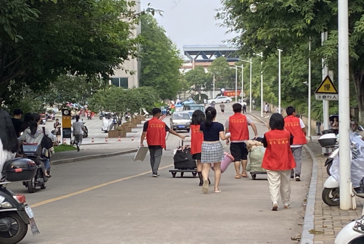 在炎炎烈日下,每一位志愿者都认真负责的做好自己的工作,坚持不懈的把此次活动做到最完美。虽然需要搬运的行李有些沉重,但依旧抵挡不了志愿者们服务的热情,在一趟趟的搬运中他们从不喊累,而是默默的为学长学姐们搬运好行李。活动中,志愿者们积极配合,充分展示了他们对劳动的热爱,体现了其不怕苦、不怕脏、不怕累的精神,把“劳动最光荣”阐释的淋漓尽致。他们用认真的态度和高度的热情把此次活动的目的诠释的淋漓尽致,从而体现了机电学子吃苦耐劳、坚持不懈、服务他人的精神。