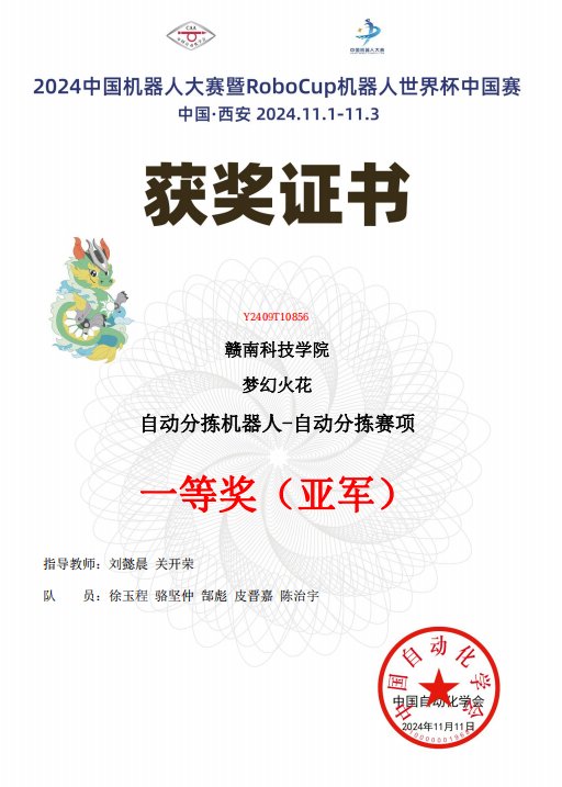 专业面向国家战略,积极对接赣南苏区振兴发展和区域经济产业转型升级的人才新需求,以“学生为中心”,落实“厚、宽、实、创”的人才培养理念,着力培养学生快速学习新事物的能力、主动学习和终身学习的能力、培育精益求精的工匠精神和锐意进取的创新精神。近三年,自动化专业学生在中国智能制造挑战赛、全国大学生智能汽车竞赛、全国机器人大赛、全国软件和信息技术专业人才大赛、江西省大学生电子专题赛等各级各类学科赛事中屡创佳绩,共获全国特等奖2项、一等奖4项、二等奖2项、三等奖6项,省级一等奖15项、二等32项、三等奖41项;获批大学生创新训练项目12项;发表论文10篇;授权实用新型专利5项;2023届学生考研报考率55%,录取率28%,大批优秀学子被深圳大学、武汉科技大学、沈阳航空航天大学等国内高水平院校录取,专业近三年一次就业率达90%以上。