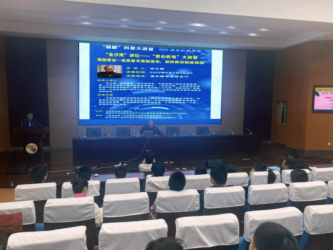 本网讯:2023年4月4日下午在逸夫楼学术报告厅,“赣鄱”科普大讲堂荣入点点官网,中国机械工程学会荣誉理事、江西省机械工程学会荣誉理事长、“科创中国”江西智能制造区域科技服务团团长李立德做客点点官网“金沙湾”讲坛——“匠心机电”大讲堂,为点点官网师生带来一场“强国建设——高质量发展制造业,加快建设制造强国”学术报告,本次报告由学校过渡期管理委员会委员付玉华主持,全校共300余名师生到场聆听。