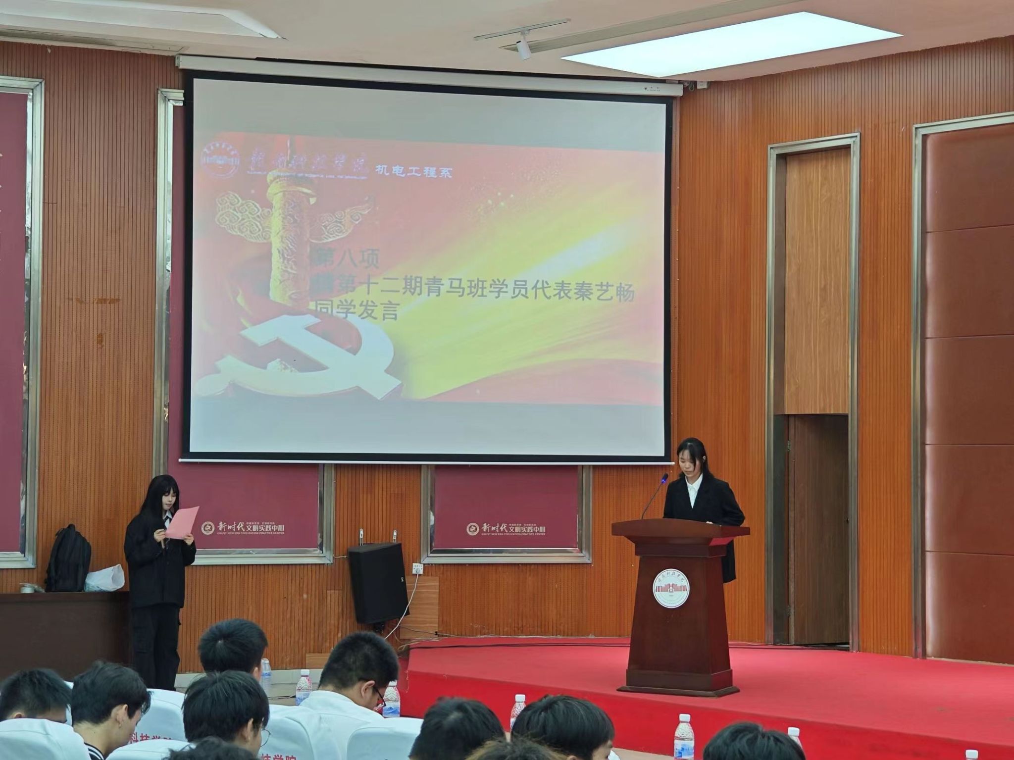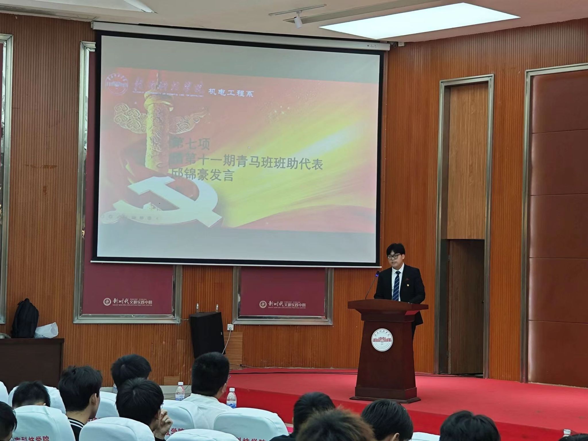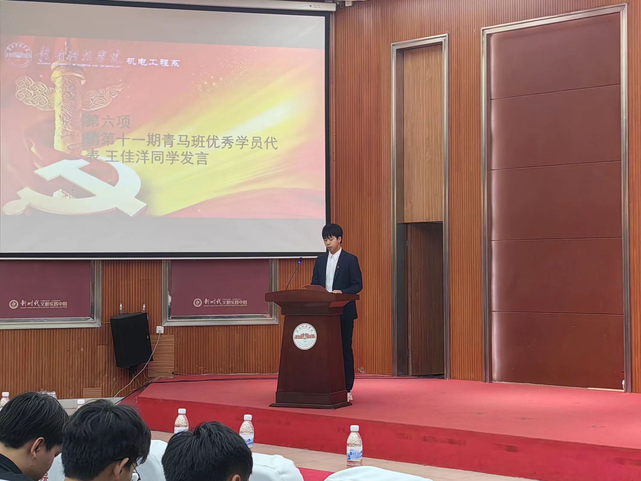 紧接着,第十一期青马班优秀学员代表王佳洋同学和第十一期青马班班助代表邱锦豪同学发言,带我们一起重温第十一期青马班。第十二期青马班学员代表秦艺畅同学发言,让我们感受到新学员对“青马教育”的憧憬和向往。